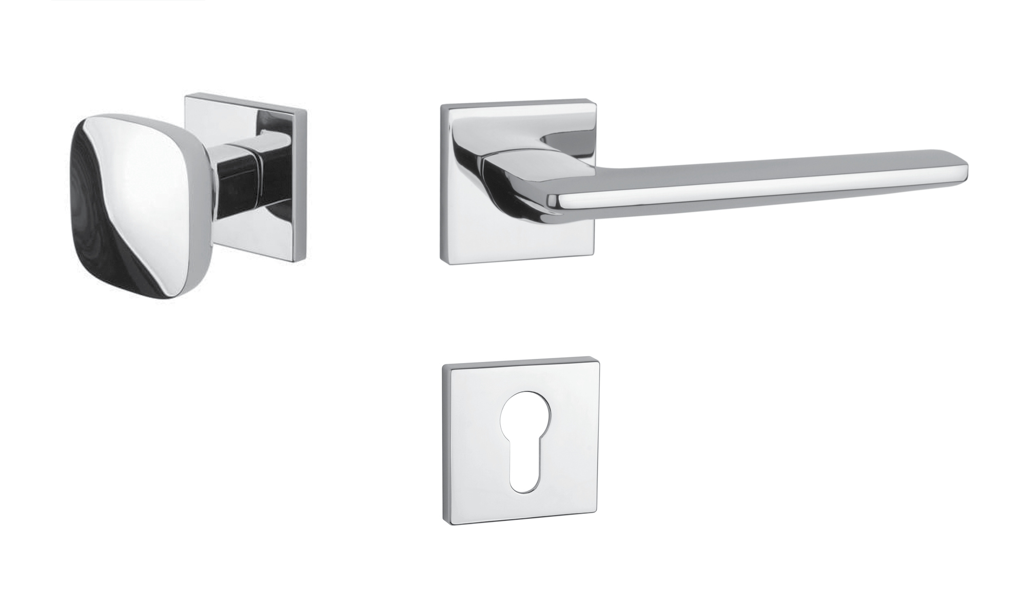 Rozetová klika na interiérové dveře s hranatou rozetou je vyrobena z materiálů vysoké kvality - zamak a je povrchově upravena. Rozeta má rozměry 52x52 mm a tloušťku jen 7 mm. Minimalistický design rozety s vysokou stabilitou kliky na dveřích působí jemně, a tím ponechává prostor pro vyniknutí designu samotné kliky.
