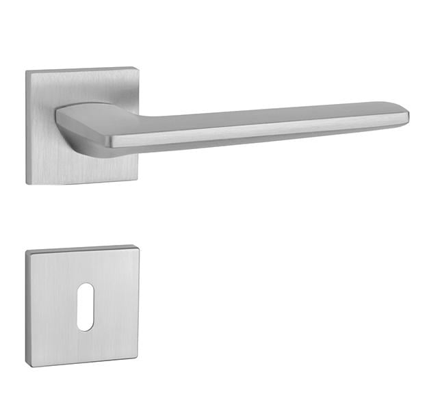 Rozetová klika na interiérové dveře s hranatou rozetou je vyrobena z materiálů vysoké kvality - zamak a je povrchově upravena. Rozeta má rozměry 52x52 mm a tloušťku jen 7 mm. Minimalistický design rozety s vysokou stabilitou kliky na dveřích působí jemně, a tím ponechává prostor pro vyniknutí designu samotné kliky.