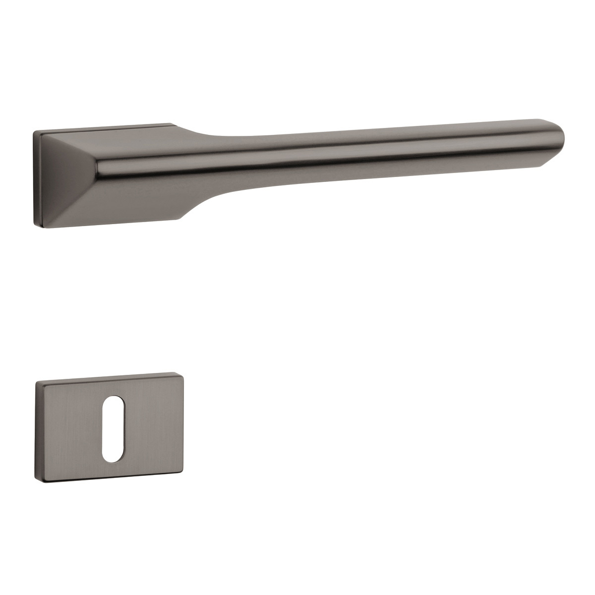 Rozetová klika na interiérové dveře s obdélníkovou rozetou je vyrobena z materiálů vysoké kvality - zamak a je povrchově upravena. Rozeta má rozměr 52 x 33 mm a tloušťku jen 7 mm. Minimalistický design rozety s vysokou stabilitou kliky na dveřích působí jemně, a tím ponechává prostor pro vyniknutí designu samotné kliky.