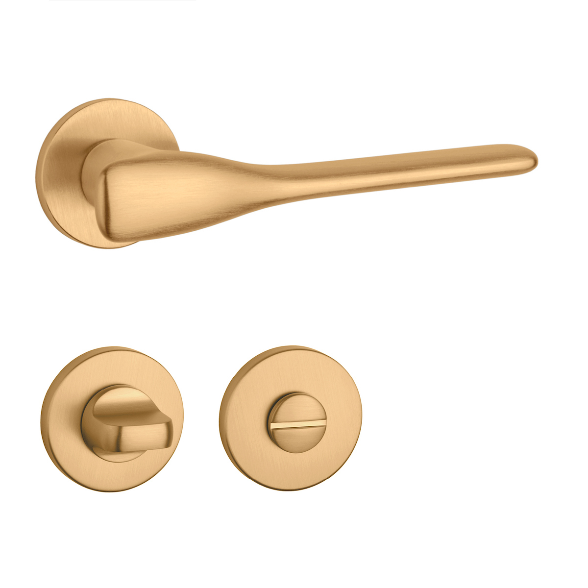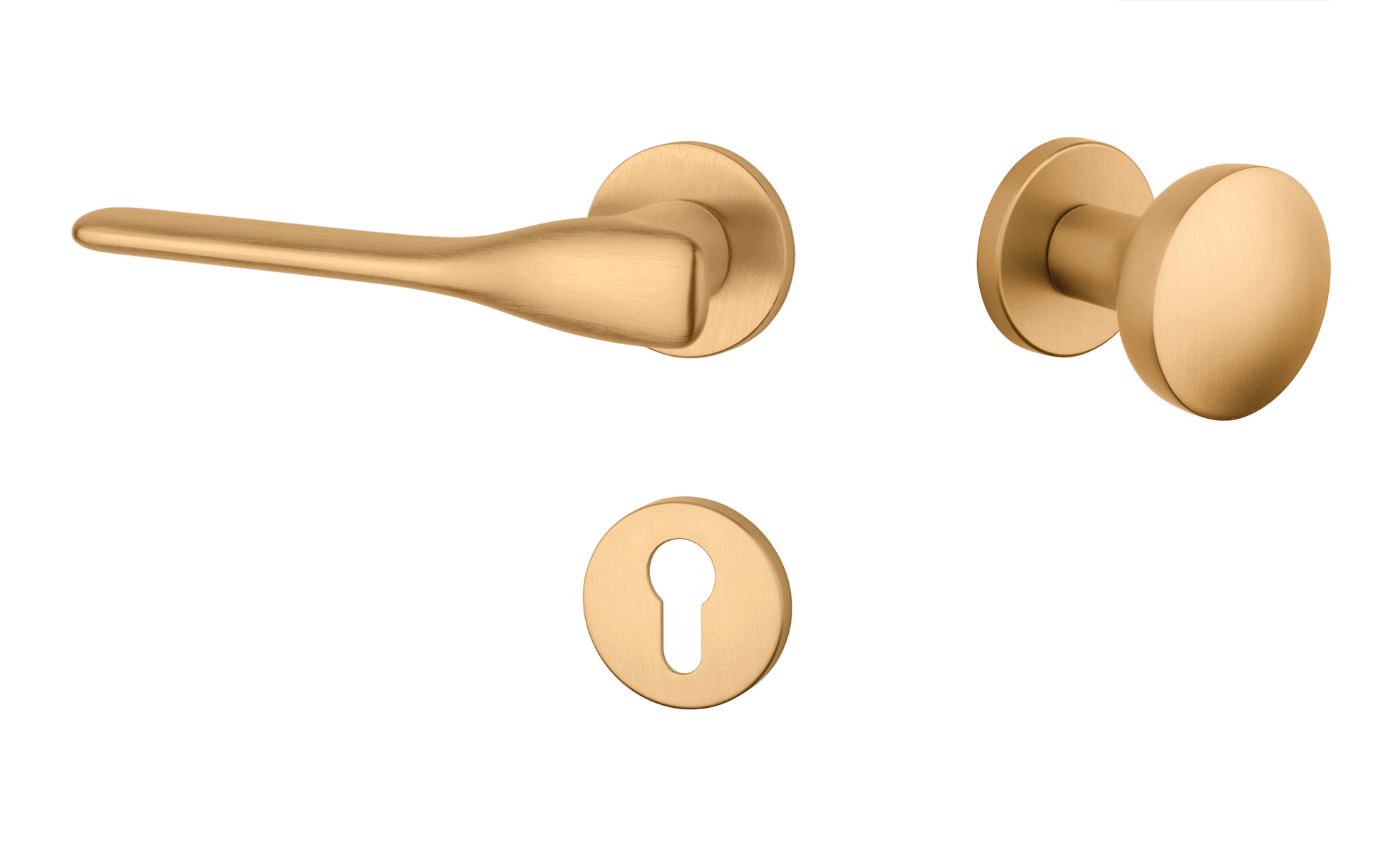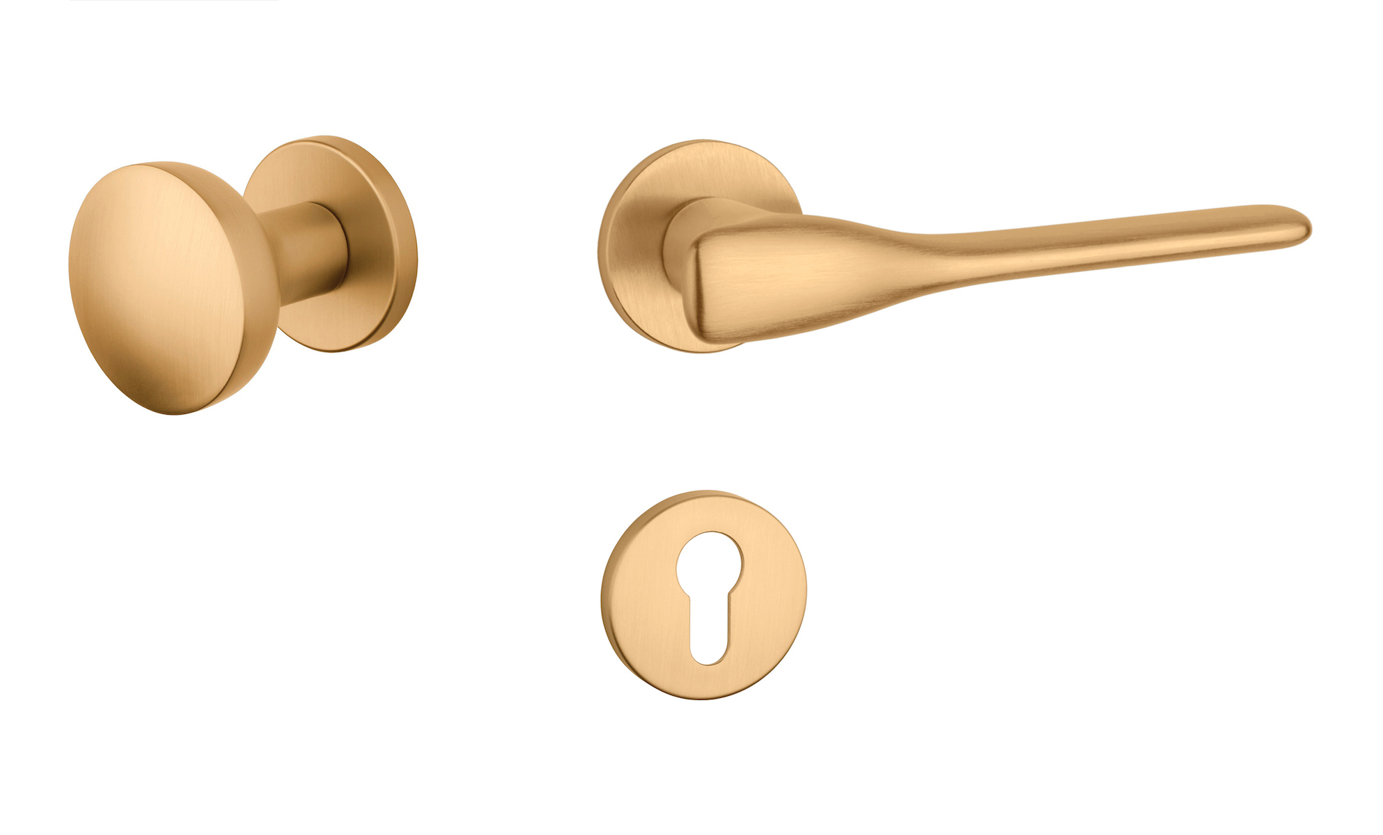 Rozetová klika na interiérové dveře s kulatou rozetou je vyrobena z materiálů vysoké kvality - zamak a je povrchově upravena. Rozeta má průměr 52 mm a tloušťku jen 7 mm. Minimalistický design rozety s vysokou stabilitou kliky na dveřích působí jemně, a tím ponechává prostor pro vyniknutí designu samotné kliky.