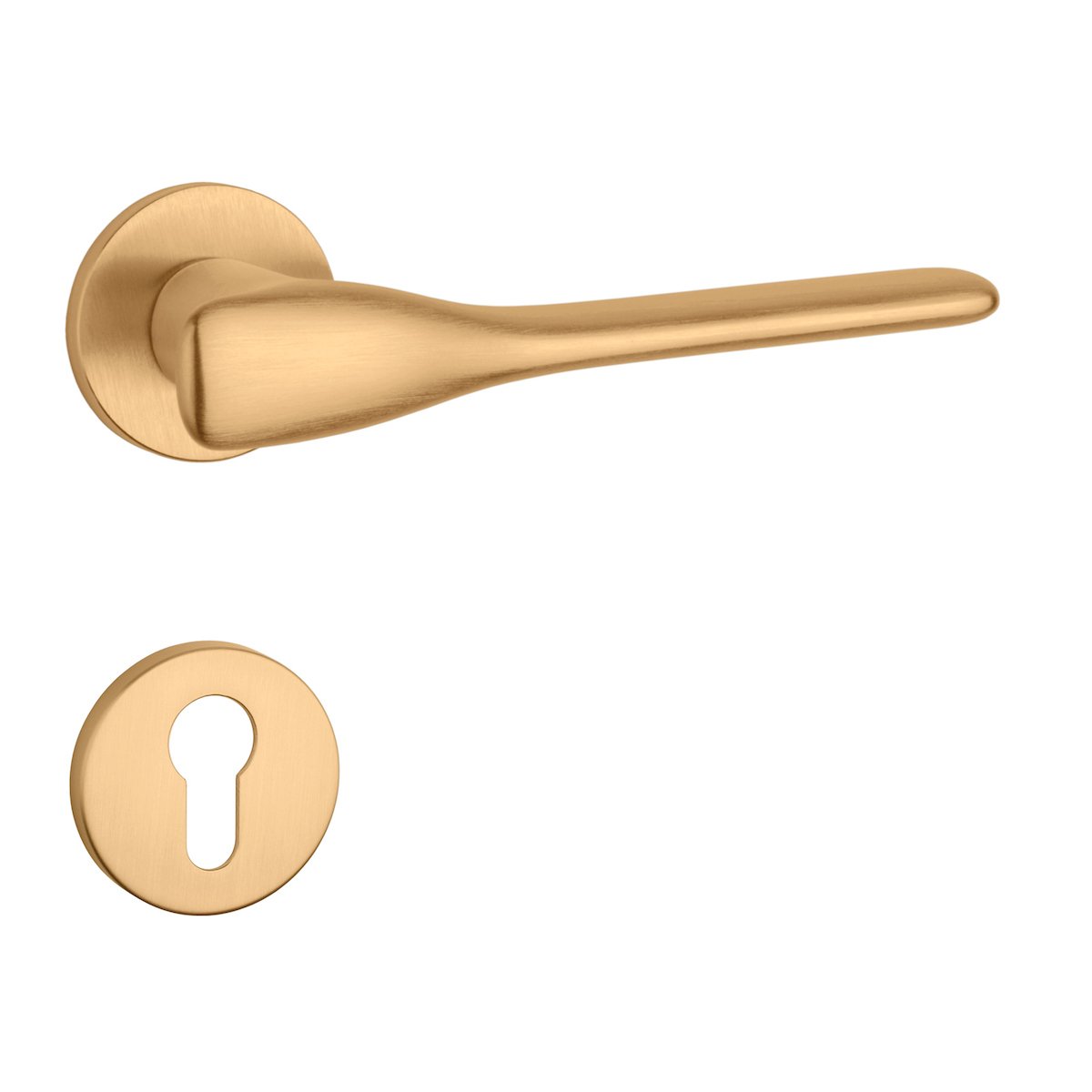 Rozetová klika na interiérové dveře s kulatou rozetou je vyrobena z materiálů vysoké kvality - zamak a je povrchově upravena. Rozeta má průměr 52 mm a tloušťku jen 7 mm. Minimalistický design rozety s vysokou stabilitou kliky na dveřích působí jemně, a tím ponechává prostor pro vyniknutí designu samotné kliky.