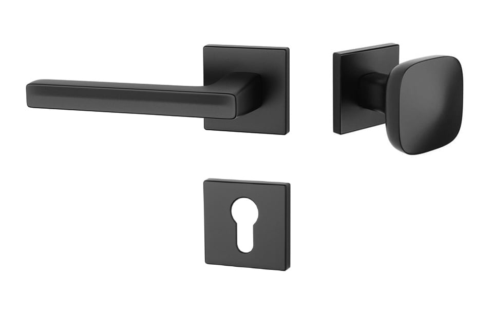Rozetová klika na interiérové dveře s hranatou rozetou je vyrobena z materiálů vysoké kvality - zamak a je povrchově upravena. Rozeta má rozměr 52x52 mm a tloušťku jen 7 mm. Minimalistický design rozety s vysokou stabilitou kliky na dveřích působí jemně, a tím ponechává prostor pro vyniknutí designu samotné kliky.