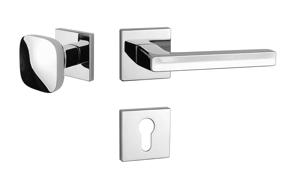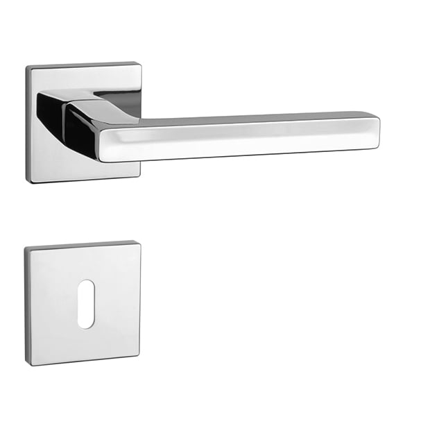 Rozetová klika na interiérové dveře s hranatou rozetou je vyrobena z materiálů vysoké kvality - zamak a je povrchově upravena. Rozeta má rozměr 52x52 mm a tloušťku jen 7 mm. Minimalistický design rozety s vysokou stabilitou kliky na dveřích působí jemně, a tím ponechává prostor pro vyniknutí designu samotné kliky.
