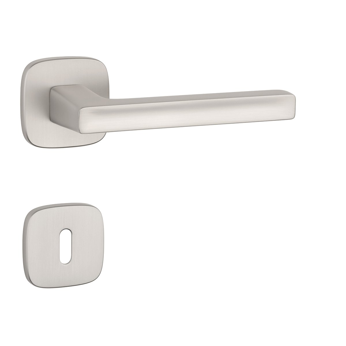 Rozetová klika PEA na interiérové dveře s hranatou oblou rozetou je vyrobená z materiálů vysoké kvality - zamak a je povrchově upravená.