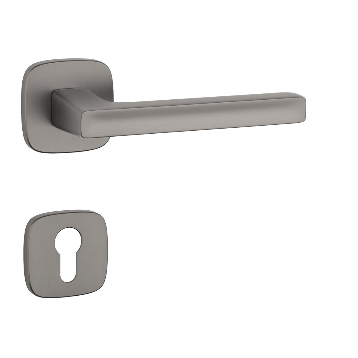 Rozetová klika PEA na interiérové dveře s hranatou oblou rozetou je vyrobená z materiálů vysoké kvality - zamak a je povrchově upravená.