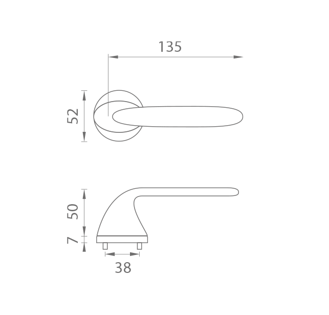 Rozetová klika na interiérové dveře s kulatou rozetou je vyrobena z materiálů vysoké kvality - zamak a je povrchově upravena. Rozeta má průměr 52 mm a tloušťku jen 7 mm. Minimalistický design rozety s vysokou stabilitou kliky na dveřích působí jemně, a tím ponechává prostor pro vyniknutí designu samotné kliky.