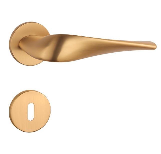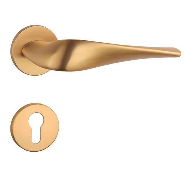 Rozetová klika na interiérové dveře s kulatou rozetou je vyrobena z materiálů vysoké kvality - zamak a je povrchově upravena. Rozeta má průměr 52 mm a tloušťku jen 5 mm. Minimalistický design rozety s vysokou stabilitou kliky na dveřích působí jemně, a tím ponechává prostor pro vyniknutí designu samotné kliky.