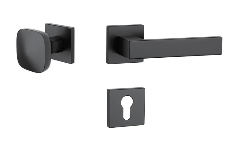 Rozetová klika na interiérové dveře s hranatou rozetou je vyrobena z materiálů vysoké kvality - zamak a je povrchově upravena. Rozeta má rozměry 52x52 mm a tloušťku jen 7 mm. Minimalistický design rozety s vysokou stabilitou kliky na dveřích působí jemně, a tím ponechává prostor pro vyniknutí designu samotné kliky.