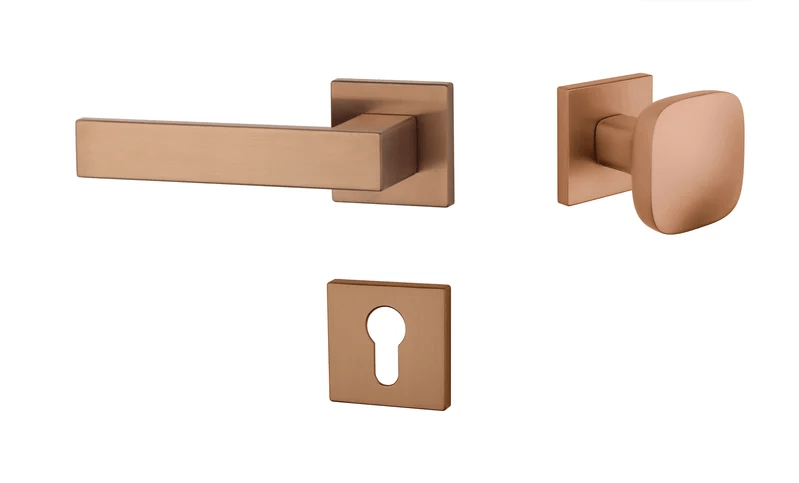 Rozetová klika na interiérové dveře s hranatou rozetou je vyrobena z materiálů vysoké kvality - zamak a je povrchově upravena. Rozeta má rozměry 52x52 mm a tloušťku jen 7 mm. Minimalistický design rozety s vysokou stabilitou kliky na dveřích působí jemně, a tím ponechává prostor pro vyniknutí designu samotné kliky.