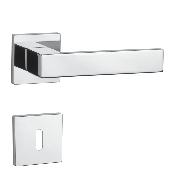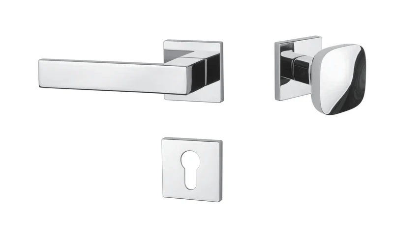 Rozetová klika na interiérové dveře s hranatou rozetou je vyrobena z materiálů vysoké kvality - zamak a je povrchově upravena. Rozeta má rozměry 52x52 mm a tloušťku jen 7 mm. Minimalistický design rozety s vysokou stabilitou kliky na dveřích působí jemně, a tím ponechává prostor pro vyniknutí designu samotné kliky.