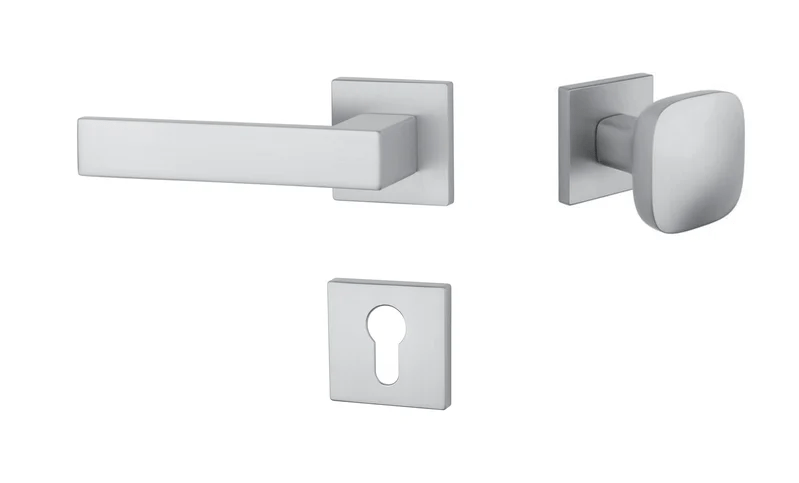 Rozetová klika na interiérové dveře s hranatou rozetou je vyrobena z materiálů vysoké kvality - zamak a je povrchově upravena. Rozeta má rozměry 52x52 mm a tloušťku jen 7 mm. Minimalistický design rozety s vysokou stabilitou kliky na dveřích působí jemně, a tím ponechává prostor pro vyniknutí designu samotné kliky.