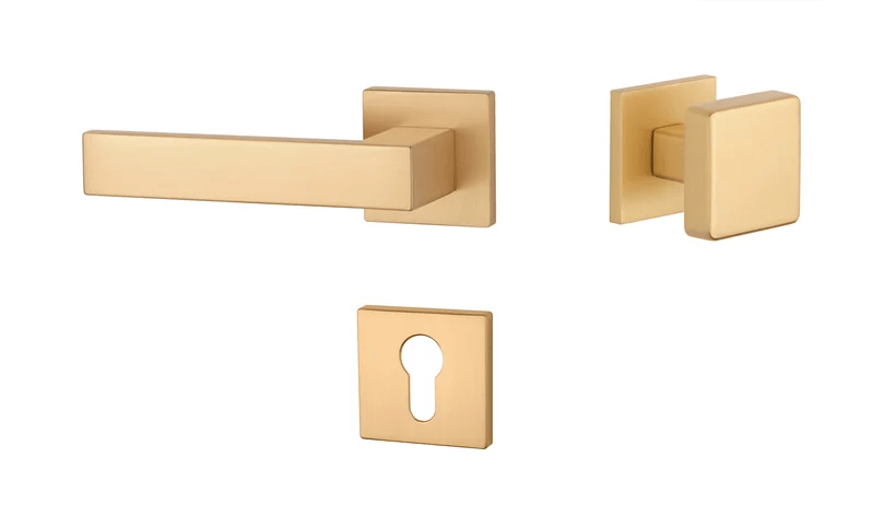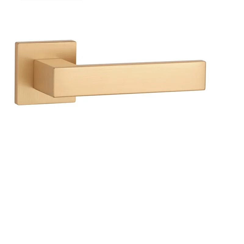 Rozetová klika na interiérové dveře s hranatou rozetou je vyrobena z materiálů vysoké kvality - zamak a je povrchově upravena. Rozeta má rozměry 52x52 mm a tloušťku jen 7 mm. Minimalistický design rozety s vysokou stabilitou kliky na dveřích působí jemně, a tím ponechává prostor pro vyniknutí designu samotné kliky.