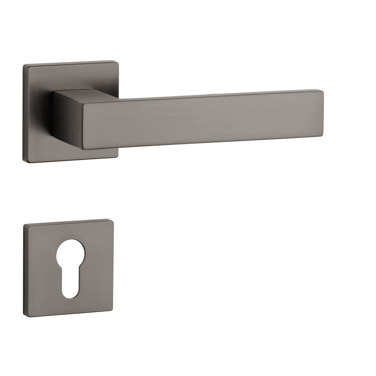 Rozetová klika na interiérové dveře s hranatou rozetou je vyrobena z materiálů vysoké kvality - zamak a je povrchově upravena. Rozeta má rozměry 52x52 mm a tloušťku jen 7 mm. Minimalistický design rozety s vysokou stabilitou kliky na dveřích působí jemně, a tím ponechává prostor pro vyniknutí designu samotné kliky.