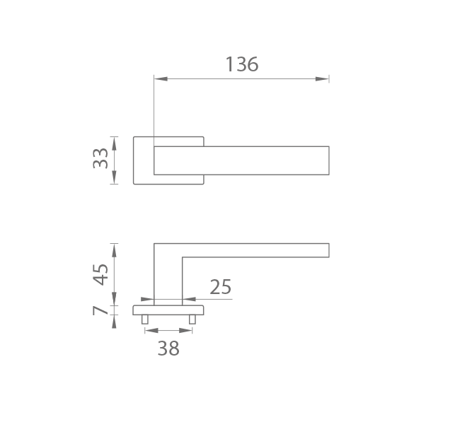 Rozetová klika na interiérové dveře s obdelníkovou rozetou je vyrobena z materiálů vysoké kvality - zamak a je povrchově upravena. Rozeta má rozměr 52 x 33 mm a tloušťku jen 7 mm. Minimalistický design rozety s vysokou stabilitou kliky na dveřích působí jemně, a tím ponechává prostor pro vyniknutí designu samotné kliky.