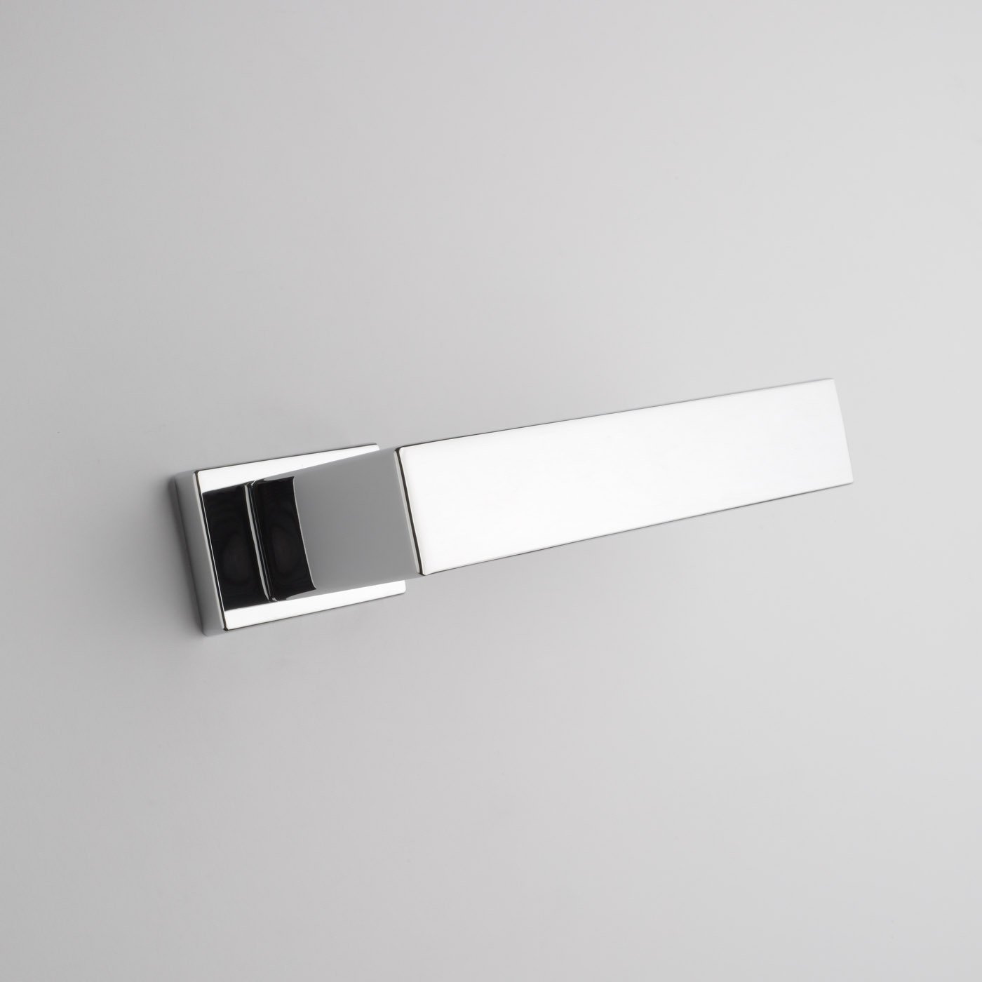Rozetová klika na interiérové dveře s obdelníkovou rozetou je vyrobena z materiálů vysoké kvality - zamak a je povrchově upravena. Rozeta má rozměr 52 x 33 mm a tloušťku jen 7 mm. Minimalistický design rozety s vysokou stabilitou kliky na dveřích působí jemně, a tím ponechává prostor pro vyniknutí designu samotné kliky.
