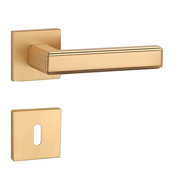 Rozetová klika na interiérové dveře s hranatou rozetou je vyrobena z materiálů vysoké kvality - zamak a je povrchově upravena. Rozeta má rozměry 52x52 mm a tloušťku jen 7 mm. Minimalistický design rozety s vysokou stabilitou kliky na dveřích působí jemně, a tím ponechává prostor pro vyniknutí designu samotné kliky.
