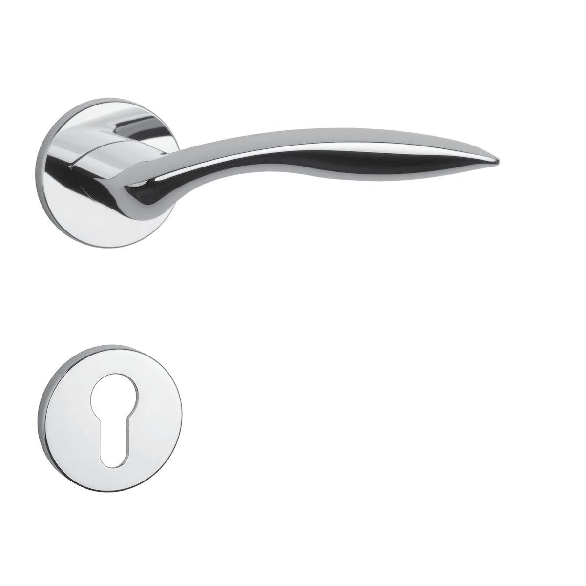 Rozetová klika na interiérové dveře s kulatou rozetou je vyrobena z materiálů vysoké kvality - zamak a je povrchově upravena. Rozeta má průměr 52 mm a tloušťku jen 7 mm.