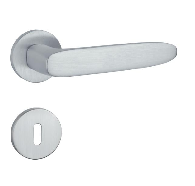 Rozetová klika na interiérové dveře s kulatou rozetou je vyrobena z materiálů vysoké kvality - zamak a je povrchově upravena. Rozeta má průměr 52 mm a tloušťku jen 7 mm. Minimalistický design rozety s vysokou stabilitou kliky na dveřích působí jemně, a tím ponechává prostor pro vyniknutí designu samotné kliky.