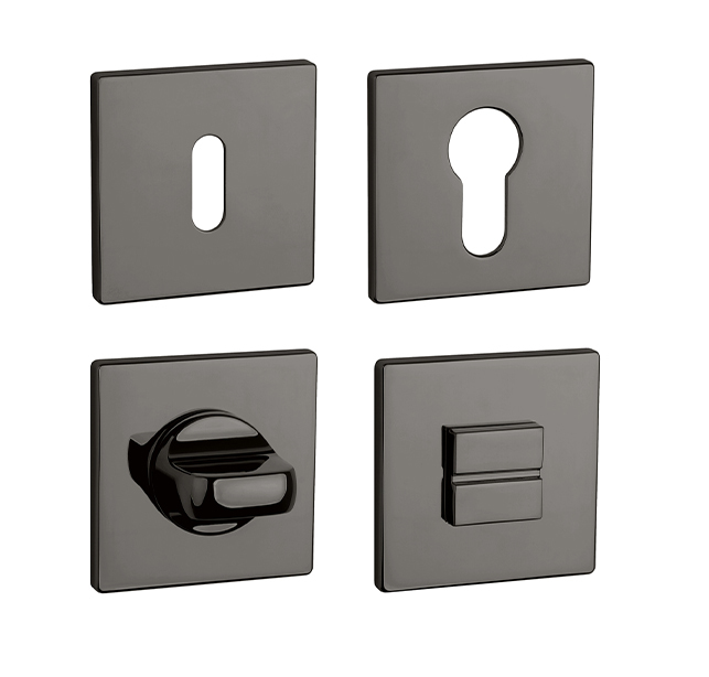 Hranatá rozeta je vyrobena z materiálů vysoké kvality - zamak a je povrchově upravena. Rozeta má rozměr 52x52 mm, tloušťku 5 mm a oválný otvor pro interiérový klíč (BB), otvor pro cylindrickou vložku (PZ), WC set s vmontovaným klíčem. Balení obsahuje 2 kusy rozet (pár) a rozety WC jsou v balení jako set.