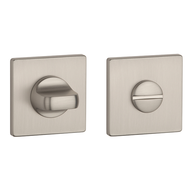 Hranatá rozeta je vyrobena z materiálů vysoké kvality - zamak a je povrchově upravena. Rozeta má rozměr 52x52 mm, tloušťku 5 mm a oválný otvor pro interiérový klíč (BB), otvor pro cylindrickou vložku (PZ), WC set s vmontovaným klíčem. Balení obsahuje 2 kusy rozet (pár) a rozety WC jsou v balení jako set.