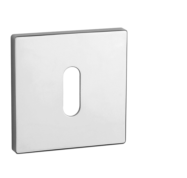 Hranatá rozeta je vyrobena z materiálů vysoké kvality - zamak a je povrchově upravena. Rozeta má rozměr 52x52 mm, tloušťku 5 mm a oválný otvor pro interiérový klíč (BB), otvor pro cylindrickou vložku (PZ), WC set s vmontovaným klíčem. Balení obsahuje 2 kusy rozet (pár) a rozety WC jsou v balení jako set.