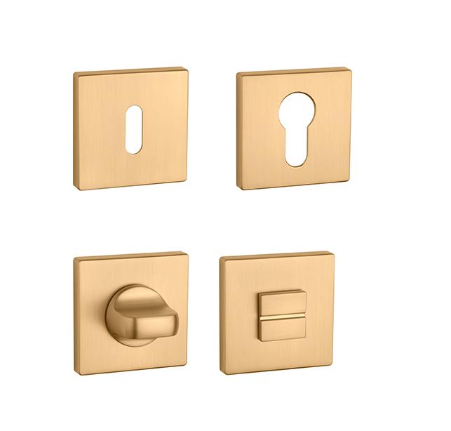 Hranatá rozeta je vyrobena z materiálů vysoké kvality - zamak a je povrchově upravena. Rozeta má rozměry 52 x 52 mm, tloušťku 7 mm a oválný otvor pro interiérový klíč (BB), otvor pro cylindrickou vložku (PZ), WC set s vmontovaným klíčem. Balení obsahuje 2 kusy rozet (pár) a rozety WC jsou v balení jako set.