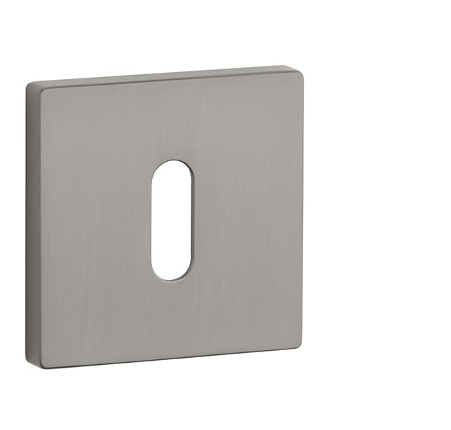 Hranatá rozeta je vyrobena z materiálů vysoké kvality - zamak a je povrchově upravena. Rozeta má rozměry 52 x 52 mm, tloušťku 7 mm a oválný otvor pro interiérový klíč (BB), otvor pro cylindrickou vložku (PZ), WC set s vmontovaným klíčem. Balení obsahuje 2 kusy rozet (pár) a rozety WC jsou v balení jako set.