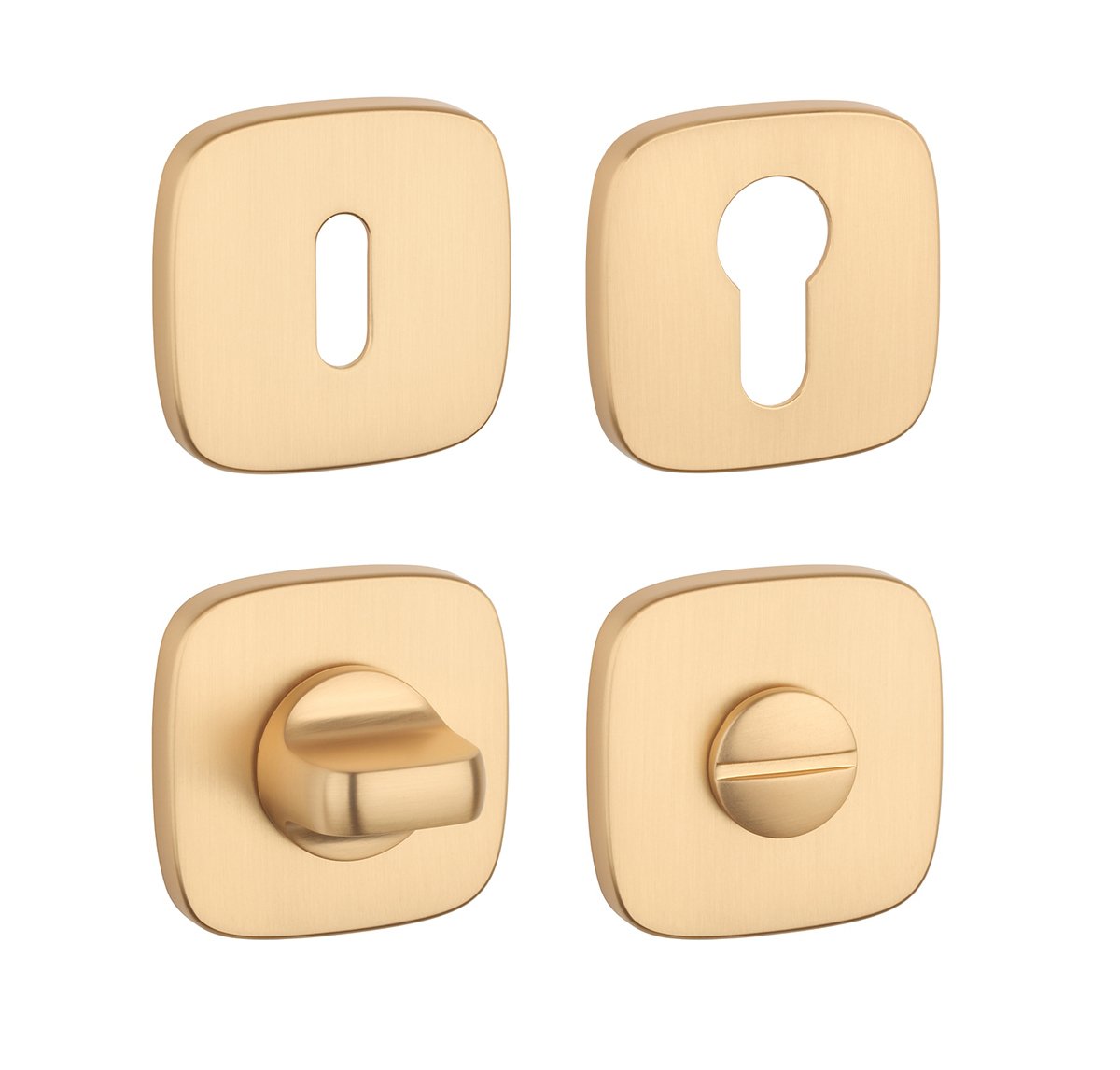 Provedení: oválný otvor pro interiérový klíč (BB), otvor pro cylindrickou vložku (PZ), WC set s vmontovaným klíčem. Balení obsahuje 2 kusy rozet (pár) a rozety WC jsou v balení jako set.