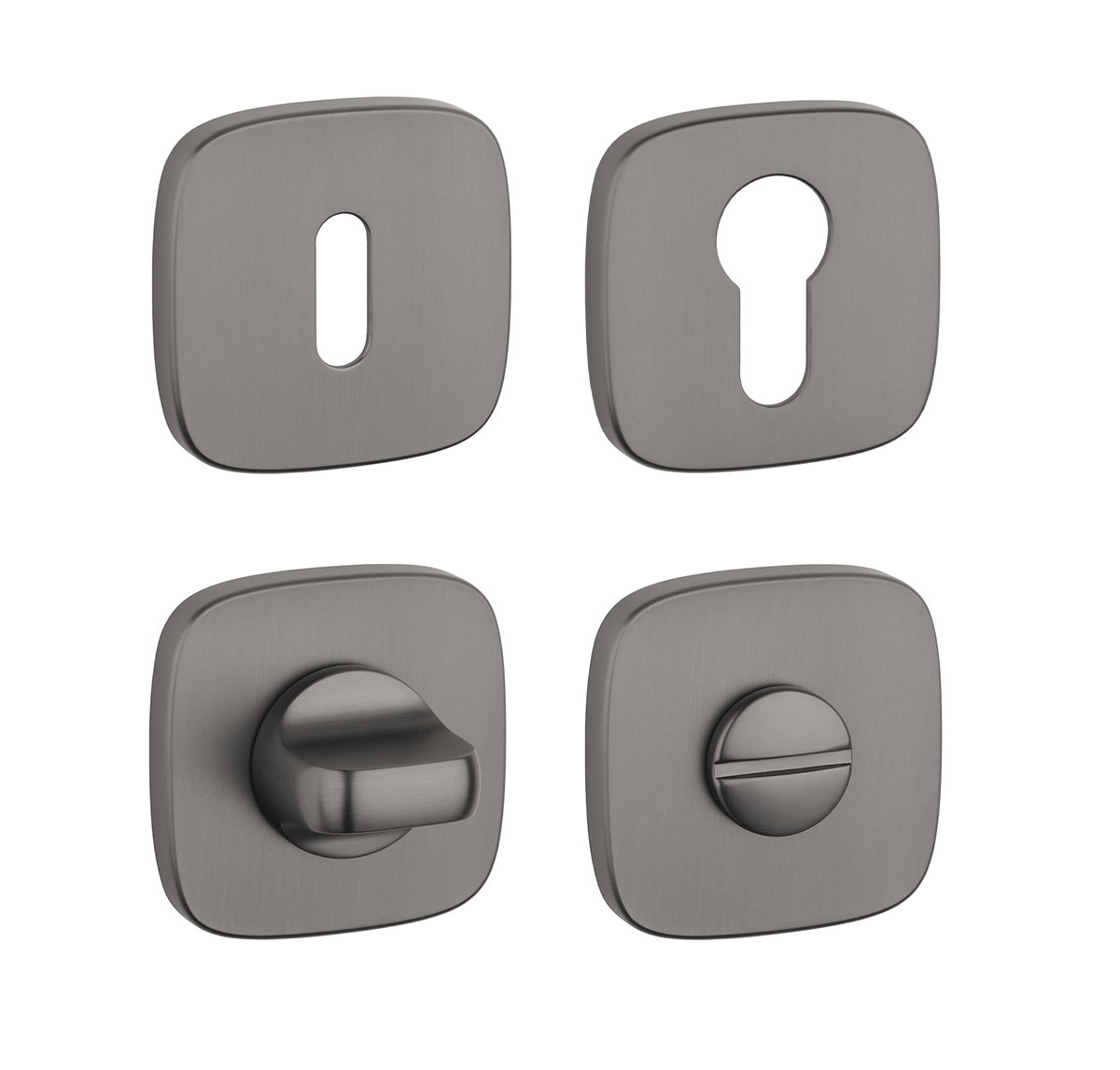 Provedení: oválný otvor pro interiérový klíč (BB), otvor pro cylindrickou vložku (PZ), WC set s vmontovaným klíčem. Balení obsahuje 2 kusy rozet (pár) a rozety WC jsou v balení jako set.
