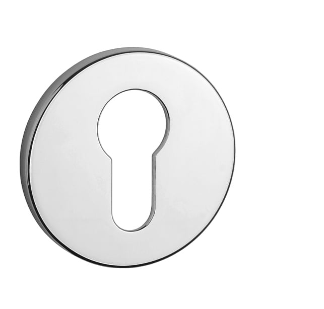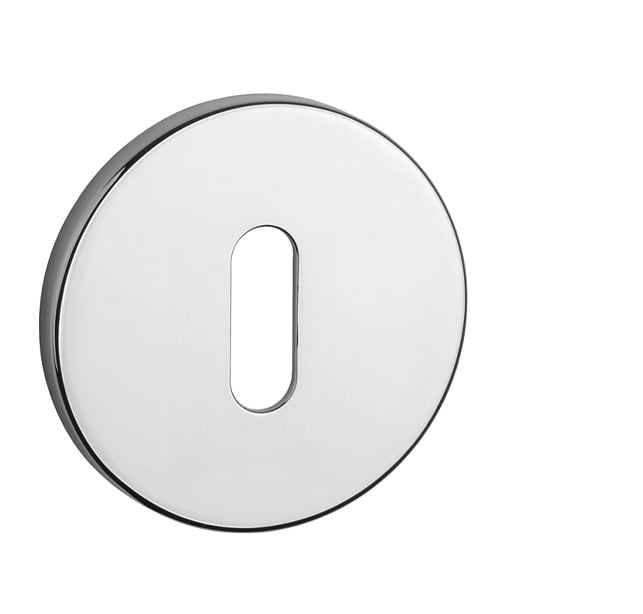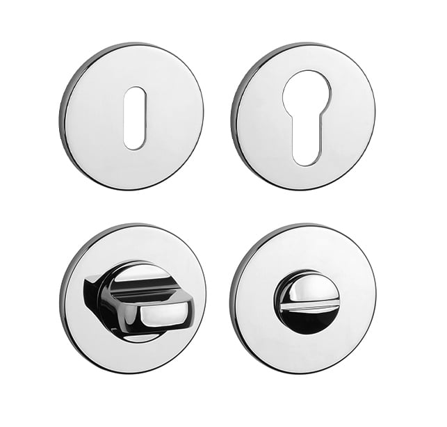Kulatá rozeta je vyrobena z materiálů vysoké kvality - zamak a je povrchově upravena. Rozeta má průměr 52 mm, tloušťku 5 mm a oválný otvor pro interiérový klíč (BB), otvor pro cylindrickou vložku (PZ), WC set s vmontovaným klíčem.