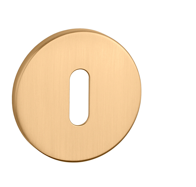Kulatá rozeta je vyrobena z materiálů vysoké kvality - zamak a je povrchově upravena. Rozeta má průměr 52 mm, tloušťku 5 mm a oválný otvor pro interiérový klíč (BB), otvor pro cylindrickou vložku (PZ), WC set s vmontovaným klíčem.
