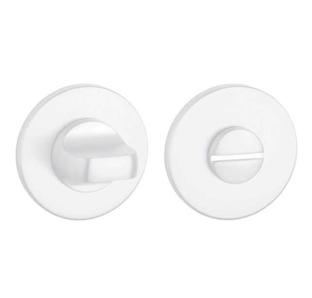 Kulatá rozeta je vyrobená z materiálů vysoké kvality - zamak a je povrchově upravená. Rozeta má průměr 52 mm, tloušťku 5 mm a oválný otvor pro interiérový klíč (BB), otvor pro cylindrickou vložku (PZ), WC set s vmontovaným klíčem.