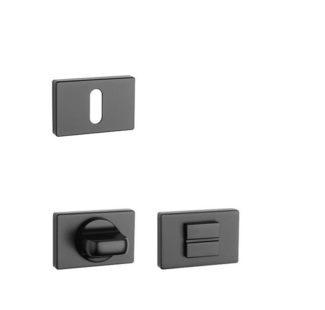 Obdelníková rozeta je vyrobena z materiálů vysoké kvality - zamak a je povrchově upravena. Rozeta má rozměry 50 x 33 mm, tloušťku 7 mm a oválný otvor pro interiérový klíč (BB), otvor pro cylindrickou vložku (PZ), WC set s vmontovaným klíčem. Balení obsahuje 2 kusy rozet (pár) a rozety WC jsou v balení jako set.
