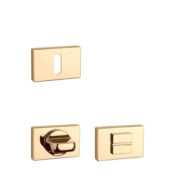 Obdelníková rozeta je vyrobena z materiálů vysoké kvality - zamak a je povrchově upravena. Rozeta má rozměry 50 x 33 mm, tloušťku 7 mm a oválný otvor pro interiérový klíč (BB), otvor pro cylindrickou vložku (PZ), WC set s vmontovaným klíčem. Balení obsahuje 2 kusy rozet (pár) a rozety WC jsou v balení jako set.