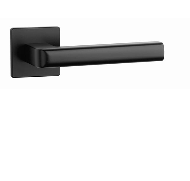 Rozetová klika na interiérové dveře s hranatou rozetou je vyrobena z materiálů vysoké kvality - zamak a je povrchově upravena. Rozeta má rozměr 52x52 mm a tloušťku jen 5 mm. Minimalistický design rozety s vysokou stabilitou kliky na dveřích působí jemně, a tím ponechává prostor pro vyniknutí designu samotné kliky.
