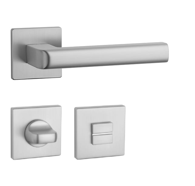 Rozetová klika na interiérové dveře s hranatou rozetou je vyrobena z materiálů vysoké kvality - zamak a je povrchově upravena. Rozeta má rozměr 52x52 mm a tloušťku jen 5 mm. Minimalistický design rozety s vysokou stabilitou kliky na dveřích působí jemně, a tím ponechává prostor pro vyniknutí designu samotné kliky.