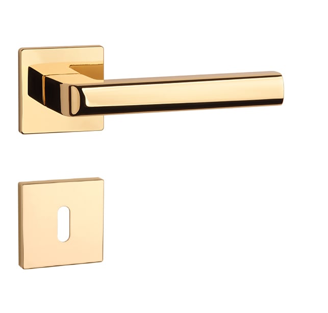 Rozetová klika na interiérové dveře s hranatou rozetou je vyrobena z materiálů vysoké kvality - zamak a je povrchově upravena. Rozeta má rozměr 52x52 mm a tloušťku jen 5 mm. Minimalistický design rozety s vysokou stabilitou kliky na dveřích působí jemně, a tím ponechává prostor pro vyniknutí designu samotné kliky.