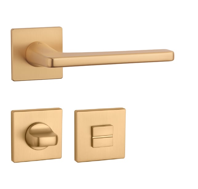 Rozetová klika na interiérové dveře s hranatou rozetou je vyrobena z materiálů vysoké kvality - zamak a je povrchově upravena. Rozeta má rozměr 52x52 mm a tloušťku jen 5 mm. Minimalistický design rozety s vysokou stabilitou kliky na dveřích působí jemně, a tím ponechává prostor pro vyniknutí designu samotné kliky.