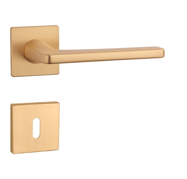 Rozetová klika na interiérové dveře s hranatou rozetou je vyrobena z materiálů vysoké kvality - zamak a je povrchově upravena. Rozeta má rozměr 52x52 mm a tloušťku jen 5 mm. Minimalistický design rozety s vysokou stabilitou kliky na dveřích působí jemně, a tím ponechává prostor pro vyniknutí designu samotné kliky.