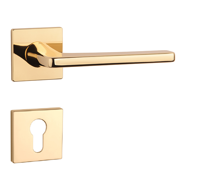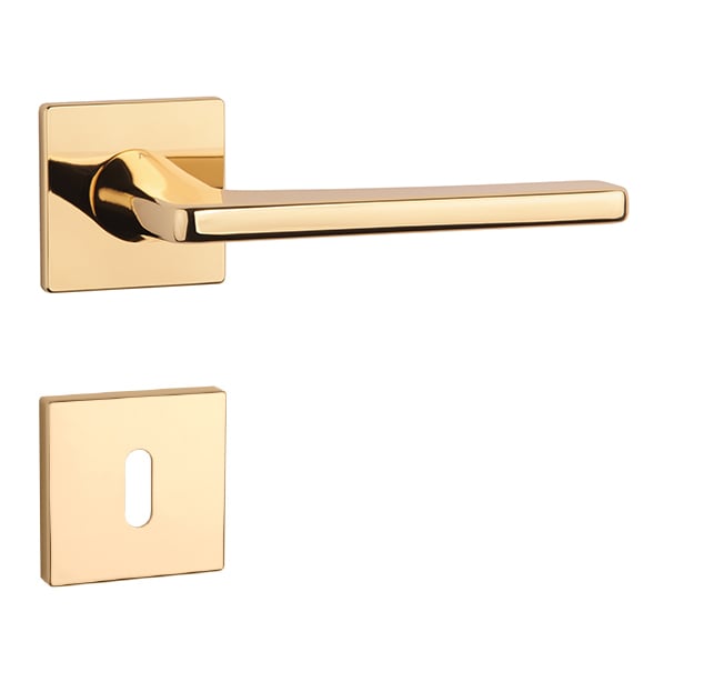 Rozetová klika na interiérové dveře s hranatou rozetou je vyrobena z materiálů vysoké kvality - zamak a je povrchově upravena. Rozeta má rozměr 52x52 mm a tloušťku jen 5 mm. Minimalistický design rozety s vysokou stabilitou kliky na dveřích působí jemně, a tím ponechává prostor pro vyniknutí designu samotné kliky.