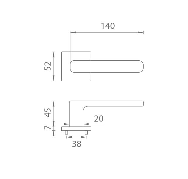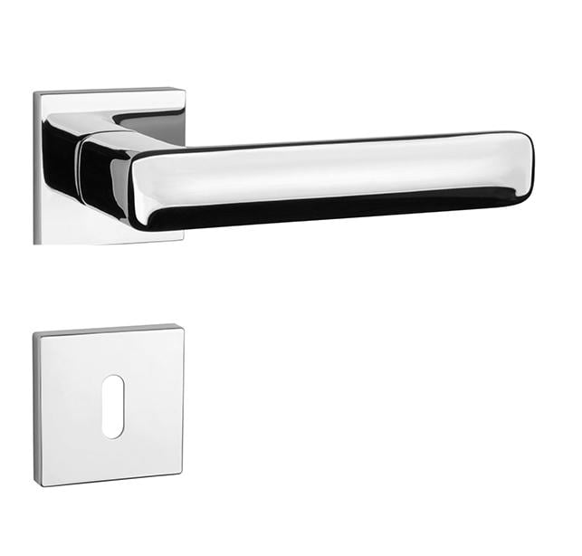 Rozetová klika na interiérové dveře s hranatou rozetou je vyrobena z materiálů vysoké kvality - zamak a je povrchově upravena. Rozeta má rozměry 52x52 mm a tloušťku jen 7 mm. Minimalistický design rozety s vysokou stabilitou kliky na dveřích působí jemně, a tím ponechává prostor pro vyniknutí designu samotné kliky.