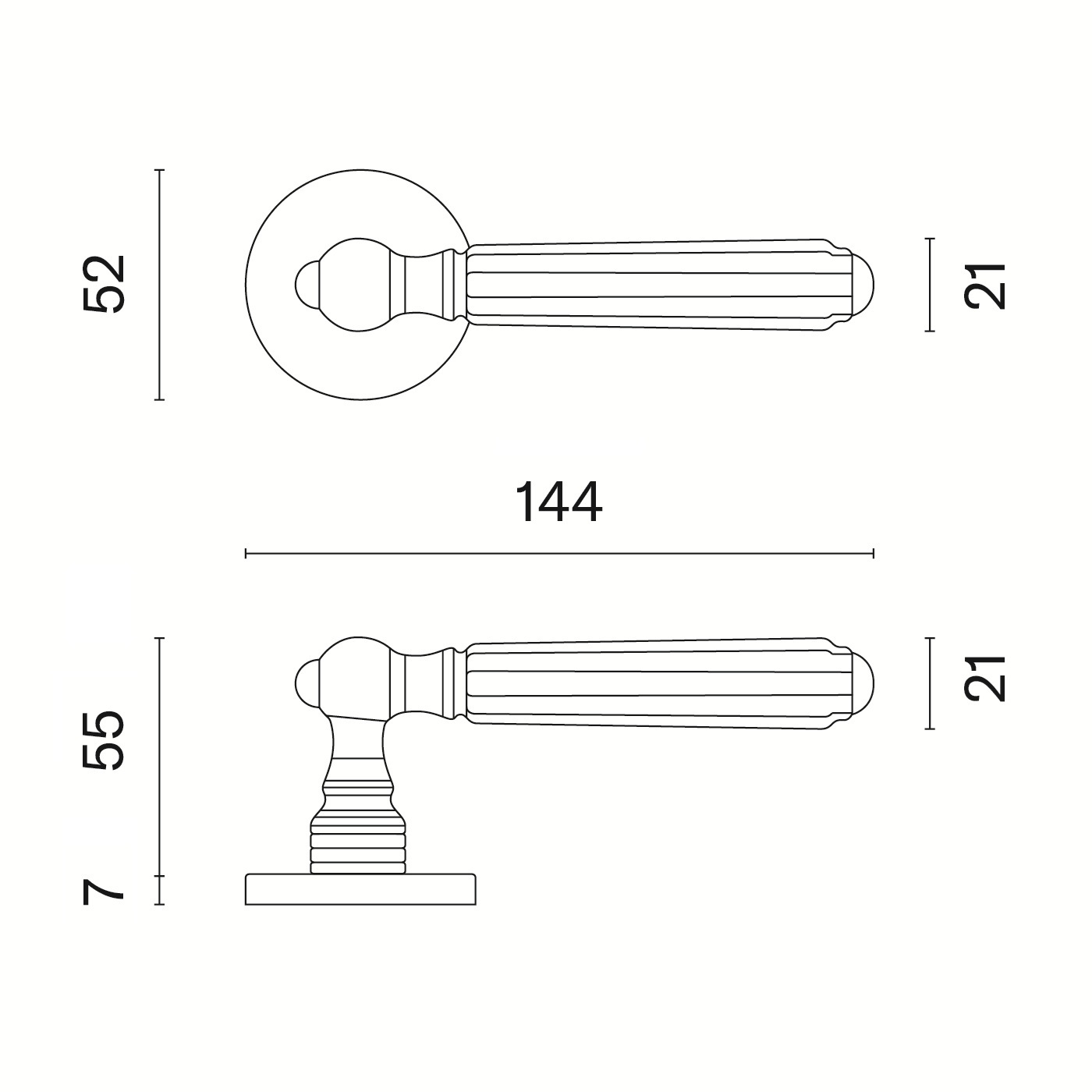 Rozetová klika na interiérové dveře s kulatou rozetou je vyrobena z materiálů vysoké kvality - zamak a je povrchově upravena. Rozeta má průměr 52 mm a tloušťku jen 7 mm. Minimalistický design rozety s vysokou stabilitou kliky na dveřích působí jemně, a tím ponechává prostor pro vyniknutí designu samotné kliky.