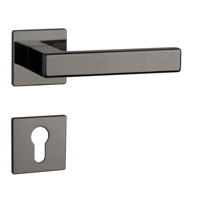 Rozetová klika na interiérové dveře s hranatou rozetou je vyrobena z materiálů vysoké kvality - zamak a je povrchově upravena. Rozeta má rozměr 52x52 mm a tloušťku jen 5 mm. Minimalistický design rozety s vysokou stabilitou kliky na dveřích působí jemně, a tím ponechává prostor pro vyniknutí designu samotné kliky.