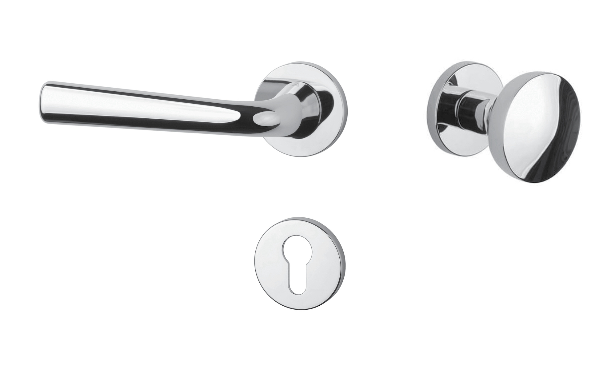 Rozetová klika na interiérové dveře s kulatou rozetou je vyrobena z materiálů vysoké kvality - zamak a je povrchově upravena. Rozeta má průměr 52 mm a tloušťku jen 7 mm.