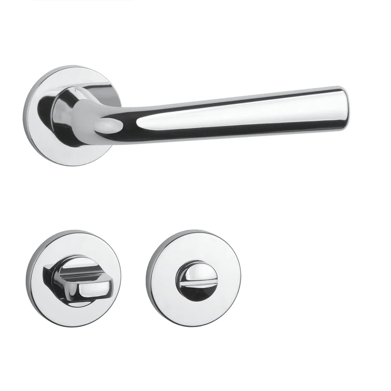 Rozetová klika na interiérové dveře s kulatou rozetou je vyrobena z materiálů vysoké kvality - zamak a je povrchově upravena. Rozeta má průměr 52 mm a tloušťku jen 7 mm.