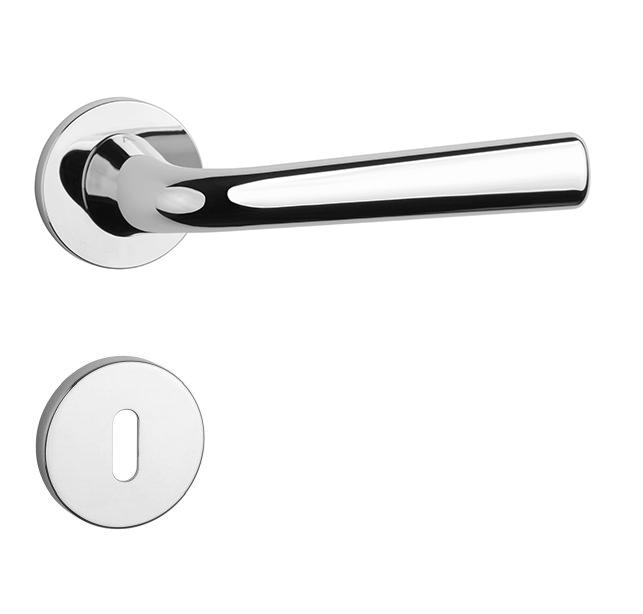 Rozetová klika na interiérové dveře s kulatou rozetou je vyrobena z materiálů vysoké kvality - zamak a je povrchově upravena. Rozeta má průměr 52 mm a tloušťku jen 7 mm.