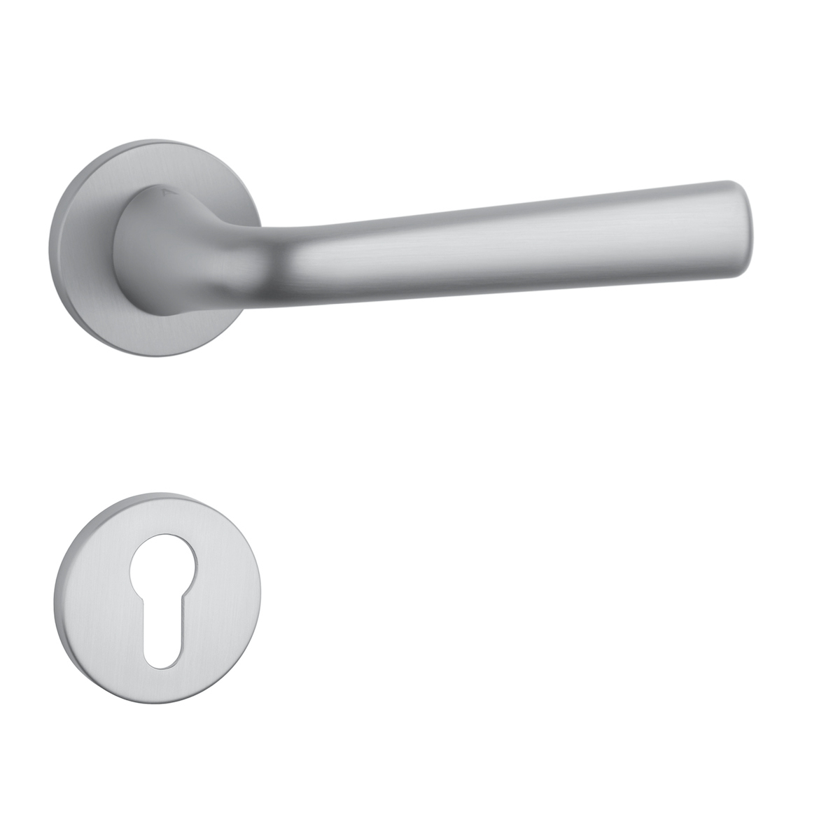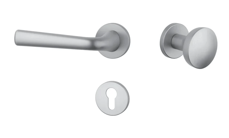 Rozetová klika na interiérové dveře s kulatou rozetou je vyrobena z materiálů vysoké kvality - zamak a je povrchově upravena. Rozeta má průměr 52 mm a tloušťku jen 7 mm.
