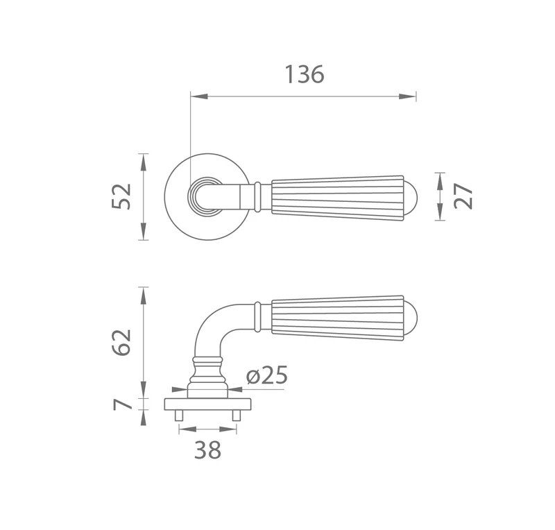 Rozetová klika na interiérové dveře s kulatou rozetou je vyrobena z materiálů vysoké kvality - zamak a je povrchově upravena. Rozeta má průměr 52 mm a tloušťku jen 7 mm. Minimalistický design rozety s vysokou stabilitou kliky na dveřích působí jemně, a tím ponechává prostor pro vyniknutí designu samotné kliky.