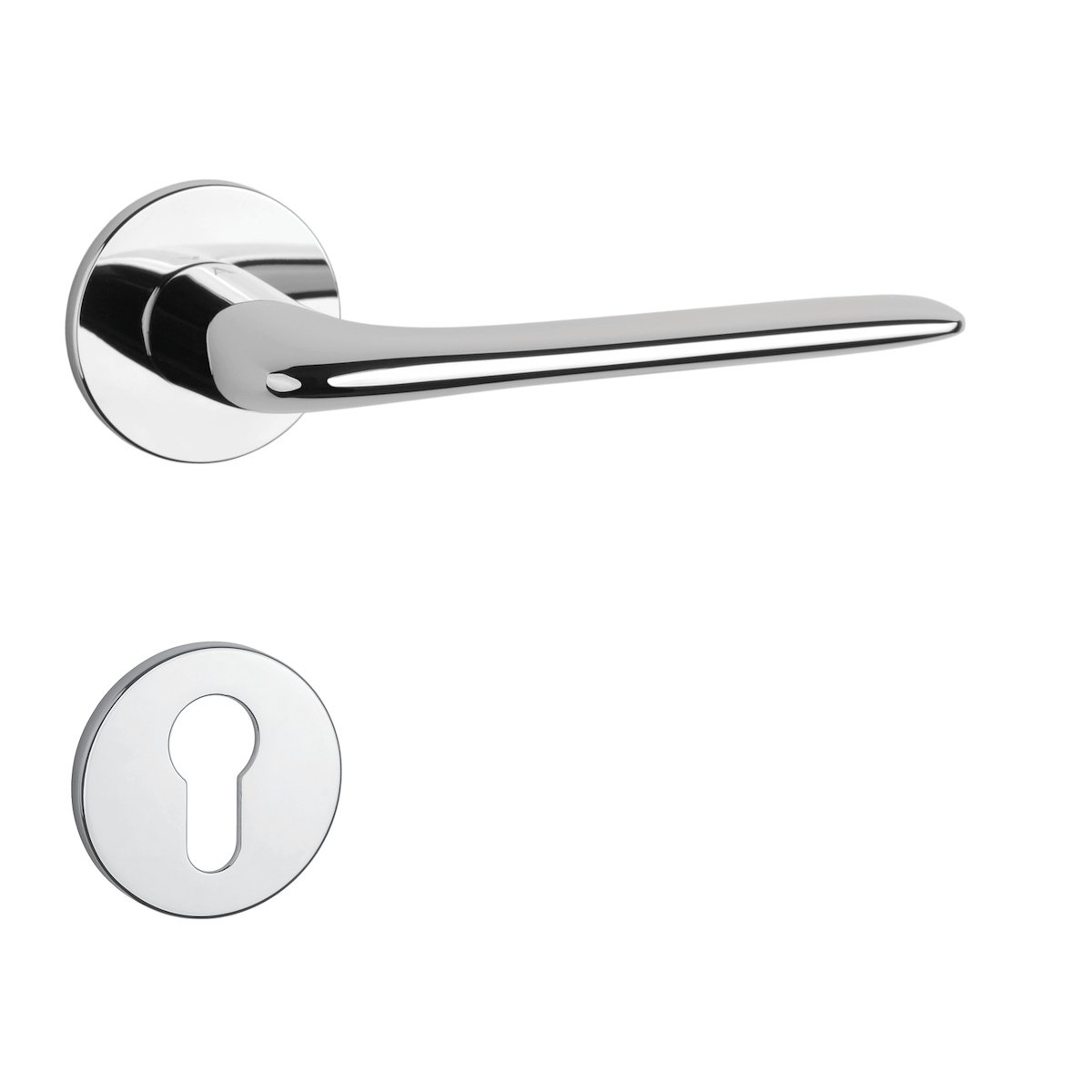 Rozetová klika na interiérové dveře s kulatou rozetou je vyrobena z materiálů vysoké kvality - zamak a je povrchově upravena. Rozeta má rozměr 52 mm a tloušťku jen 5 mm. Minimalistický design rozety s vysokou stabilitou kliky na dveřích působí jemně, a tím ponechává prostor pro vyniknutí designu samotné kliky.