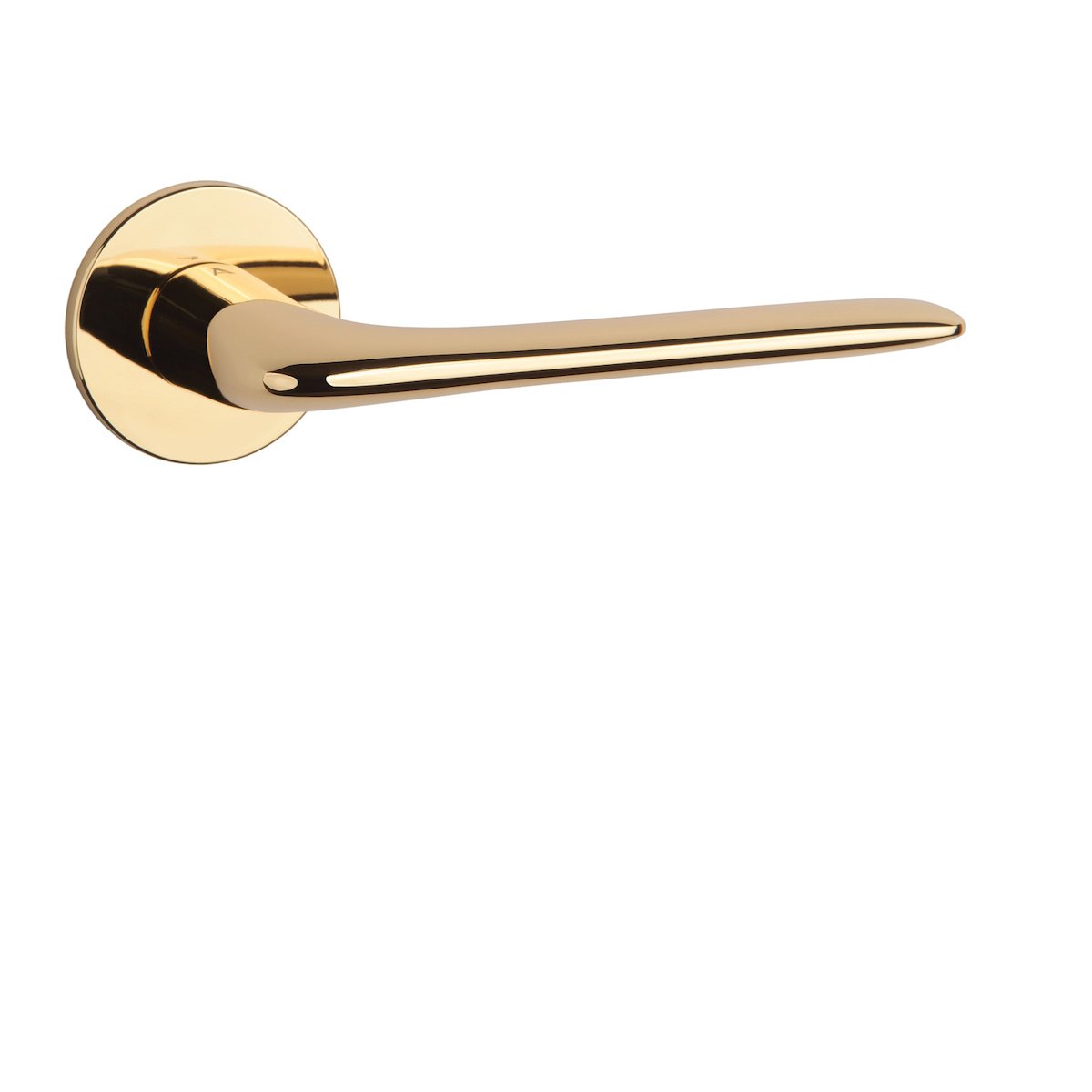 Rozetová klika na interiérové dveře s kulatou rozetou je vyrobena z materiálů vysoké kvality - zamak a je povrchově upravena. Rozeta má rozměr 52 mm a tloušťku jen 5 mm. Minimalistický design rozety s vysokou stabilitou kliky na dveřích působí jemně, a tím ponechává prostor pro vyniknutí designu samotné kliky.